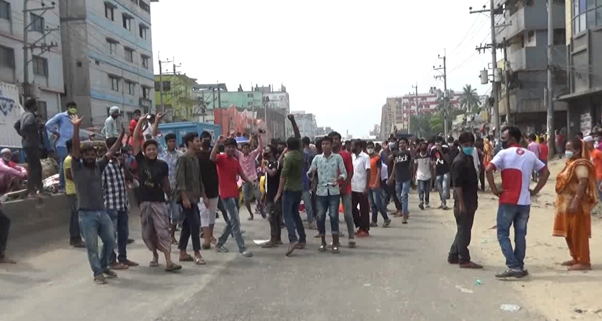 লগডাউন উপেক্ষা করে গাজীপুরের বিভিন্ন এলাকায় পোশাক কারখানায় বকেয়া বেতনের দাবিতে শ্রমিক অসন্তোষ দেখা দিয়েছে। সকাল থেকে ঢাকা-ময়মনসিংহ মহাসড়ক অবরোধ করে বিক্ষোভ করেছে শ্রমিকরা। মহানগরের টঙ্গী, ভোগড়া, শরীফপুর, বোর্ড বাজার, লক্ষীপুরা তিনসড়ক এবং সালনা এবং ছয়দানা, শ্রীপুরের টেপিরবাড়ী এলাকায় বকেয়া বেতনের দাবিতে মহাসড়ক অবরোধ করে রাখে শ্রমিকরা।
