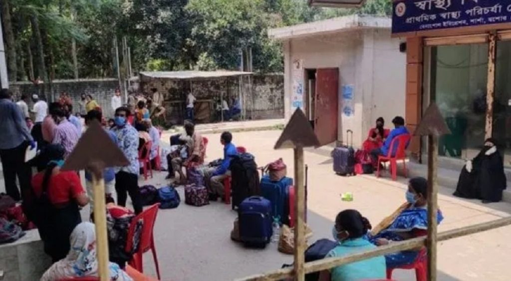 ভারত থেকে ফেরত আসা পাসপোর্ট যাত্রীদের ইমিগ্রেশনের আনুষ্ঠানিকতা শেষে তাদের পাঠিয়ে দেওয়া হচ্ছে নিকটস্থ প্রাতিষ্ঠানিক কোয়ারেন্টাইনে।