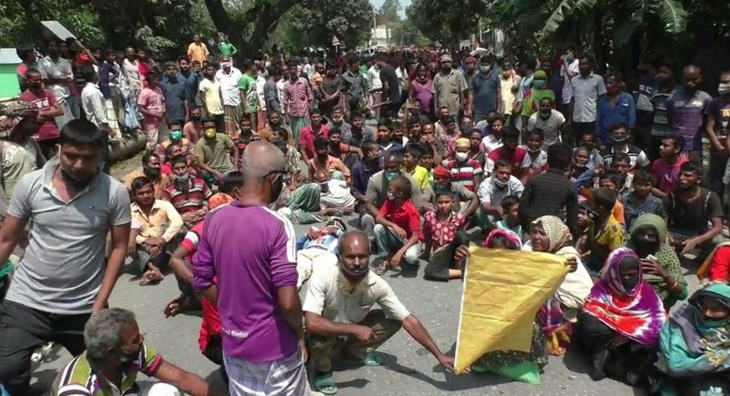 কুড়িগ্রাম সদরের কাঁঠালবাড়ি চৌরাস্তায় খাদ্যের দাবিতে গাছের গুড়ি ফেলে কুড়িগ্রাম-রংপুর মহাসড়ক অবরোধ করে বিক্ষোভ করেছে স্থানীয়রা। শনিবার সকাল ৯টা থেকে শতাধিক নারী-পুরুষ বিক্ষোভ করে। এসময় রাস্তার দু’পাশে সকল ধরণের যানচলাচল বন্ধ হয়ে যায়।