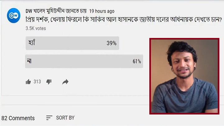 জার্মানভিত্তিক সংবাদমাধ্যম ডয়চে ভেলের বাংলা বিভাগের প্রধান খালেদ মুহিউদ্দিনের সঞ্চালনায় সরাসরি লাইভে যুক্ত হন দূর্নীতির দায়ে মাঠের বাইরে থাকা বাংলাদেশের অলরাউন্ডার সাকিব আল হাসান। কথা হয় মাঠে ফেরার আগে ও পরবর্তী নানা কথা নিয়ে।