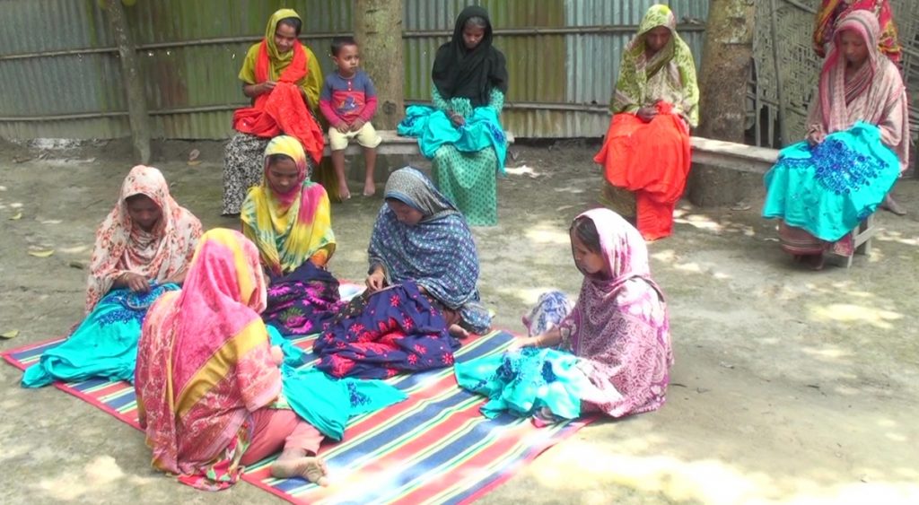 কাজের ফাঁকে কথা হয় নারী কারিগরদের সাথে। তারা জানান, কিছুদিন আগেও তাদের সংসারে অভাব ছিলো। পরে প্রশিক্ষণ নিয়ে কাপড়ের কাজ করায় এখন বাড়তি উপার্জন হচ্ছে। প্রতিটি শাড়ি ও জামায় কাজ করে মজুরি হিসেবে মাসে তিন থেকে চার হাজার টাকা আয় করে ভালোই চলছিলো। এ কাজ করে আর্থিক স্বচ্ছলতার স্বপ্ন দেখলেও করোনার প্রভাবে আগের মতো কাজ করতে পারছেন না তারা। ফলে সামনে অন্ধকার দেখছেন এসব নারীরা।