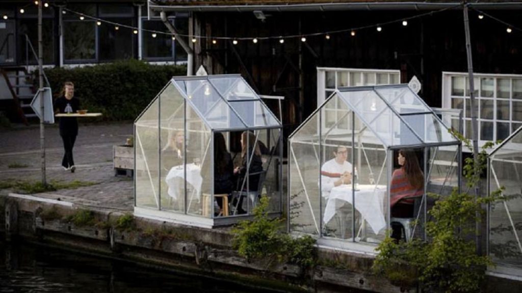 দেশটিতে সামাজিক দূরত্ব বজায় রাখতে রেস্তোরাঁয় তৈরি করা হয়েছে কাচঘেরা ঘর।