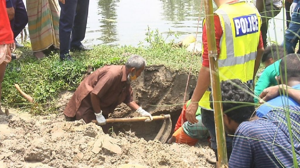 বগুড়ার সোনাতলায় নিখোঁজের ১১ মাস পর জমিতে পুঁতে রাখা ব্যবসায়ীর মরদেহ উদ্ধার করেছে পুলিশ। শুক্রবার দুপুরে উপজেলার রানীরপাড়া এলাকায় ধানক্ষেত থেকে মরদেহটি উদ্ধার করা হয়। নিহত রফিকুল ইসলামের স্ত্রী-পুত্র ও পরকীয়া প্রেমিক তাকে হত্যা করার পর মরদেহ বস্তায় ভরে পুঁতে রাখে বলে পুলিশ জানিয়েছে।