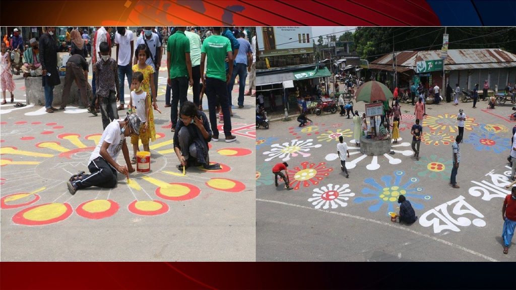 পাবনার চাটমোহরে ফেসবুক পেজ ‘চেতনায় চাটমোহর’র উদ্যোগে করোনা সচেতনতায় ব্যতিক্রমী সড়ক চিত্রাঙ্কন কর্মসূচি পালন শুরু হয়েছে।