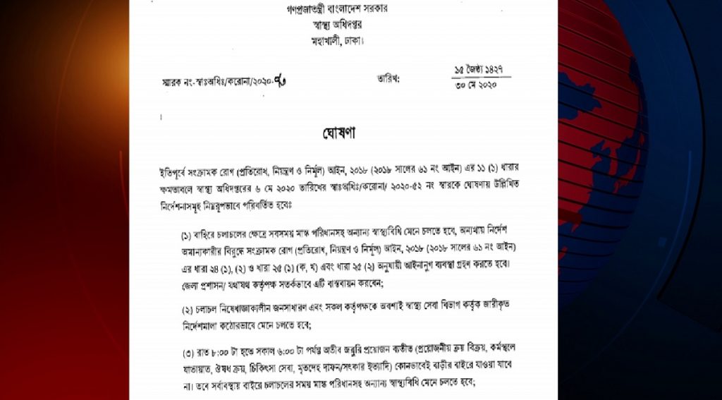 স্বাস্থ্য অধিদপ্তরের অতিরিক্ত মহাপরিচালক ডা. নাসিমা সুলতানা স্বাক্ষরিত বিজ্ঞপ্তিতে বলা হয়েছে, বাইরে চলাচলের ক্ষেত্রে সবসময় মাস্ক পরিধানসহ অন্যান্য স্বাস্থ্যবিধি মেনে চলতে হবে। তা নাহলে সংক্রামক রোগ (প্রতিরোধ, নিয়ন্ত্রণ ও নির্মূল) আইন, ২০১৮ এর ধারা ২৪ (১), (২) ও ধারা ২৫ (১) ও (২) অনুয়ায়ী ব্যবস্থা নেয়া হবে। আর এই আইন বাস্তবায়ন করবে জেলা প্রশাসন ও যথাযথ কর্তৃপক্ষ।