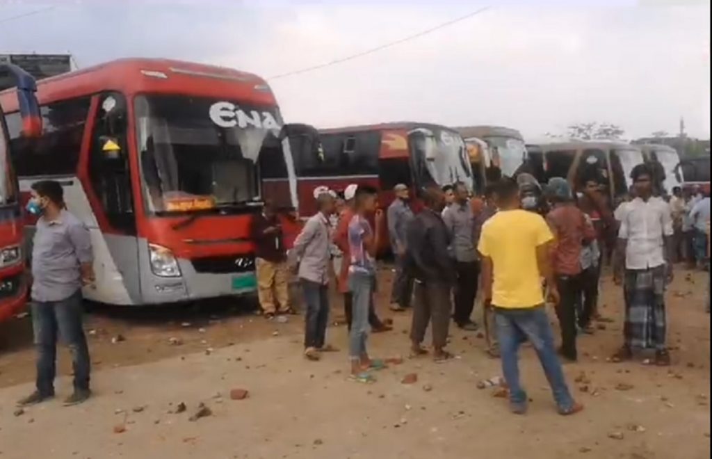 জানা যায়, বিকেলে আন্দোলনকারী শ্রমিকরা বাস টার্মিনাল এলাকায় বিক্ষোভ মিছিল করছিলেন। মিছিল থেকে বাস টার্মিনাল এলাকায় অবস্থিত এনা পরিবহনের কাউন্টারের দ্বিতীয় তলায় অবস্থিত ফলিকের অফিস লক্ষ্য করে ইট-পাটকেল ছুঁড়তে থাকেন কয়েকজন। এরপর সংষর্ঘে জড়িয়ে পড়েন দুপক্ষ।