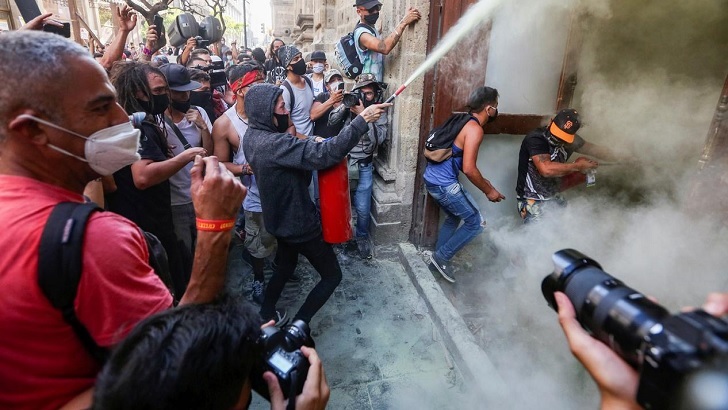 জালিসকো রাজ্যের রাজধানীর ঐতিহাসিক কেন্দ্রে বিক্ষোভের সময় প্রাসাদসহ বিভিন্ন ভবনে আগুন ধরিয়ে দিতে দেখা গেছে।