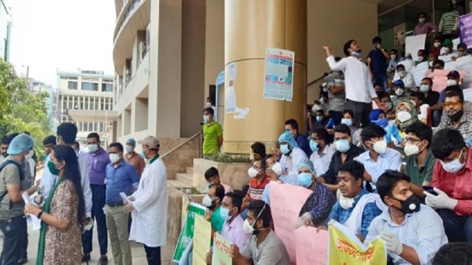আজ রোববার সকালে মহাখালীতে স্বাস্থ্য ভবনের নিচে অবস্থান কর্মসূচি পালন করেন তারা।