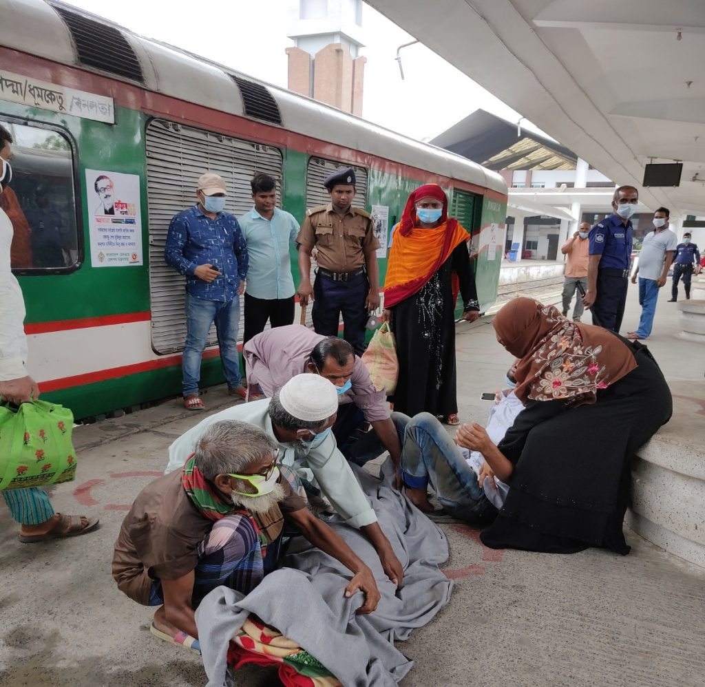 রেলওয়ে পুলিশের ভাষ্যমতে, ট্রেন থেকে প্লাটফর্মে নেমে মাথা ঘুরে পড়ে যান রাজন। রেলওয়ে হাসপাতালের অ্যাম্বুলেন্সকে জানানো হলে তারা ওই রোগীকে বহন করতে অপারগতা জানায়। পরে রেল পুলিশ বাধ্য হয়ে তাকে একটি অটোরিকশায় তুলে রাজশাহী মেডিকেল কলেজ হাসপাতালে পাঠায়।