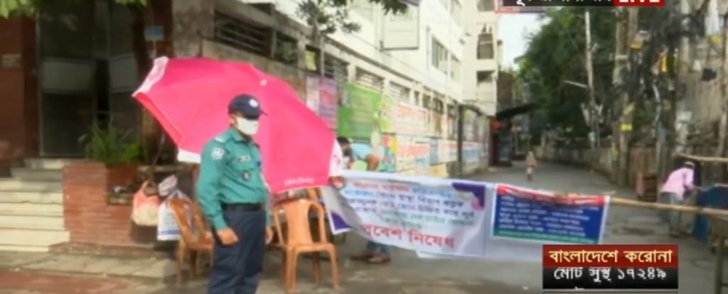 করোনাভাইরাস আক্রান্ত রোগীর সংখ্যার ঘনত্বে শীর্ষে থাকা ঢাকা উত্তর সিটি কর্পোরেশনের পূর্ব রাজাবাজার এলাকা। সংক্রমণের বিস্তার ঠেকাতে ‘রেড জোন’ হিসেবে চিহ্নিত করে গত মঙ্গলবার মধ্যরাত থেকে পরীক্ষামূলকভাবে লকডাউনের পর অঞ্চলটিতে কড়াকড়ি বেড়েছে। লকডাউন পর্যবেক্ষণের জন্য ২৪ ঘন্টা টহল বজায় রেখেছে আইনশৃঙ্খলা বাহিনী। পরিস্থিতি দেখার জন্য মাঝে মধ্যে ঊর্ধ্বতন পুলিশ অফিসাররাও আসছেন বলে জানা গেছে।