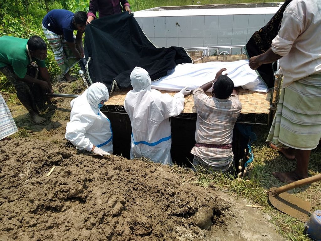পরে যমুনা টিভির পাবনা প্রতিনিধি সনম রহমানের তত্বাবধানে সেখানে ছুটে যান তহুরা আজিজ ফাউন্ডেশনের পরিচালক দেওয়ান মাহবুব ও কালেরকণ্ঠ শুভ সংঘের পাবনা জেলা সভাপতি ও সমাজকর্মী শিশির ইসলাম। তারা সেখানে গিয়ে লাশ গোসল করান। পরে, পরিবারের দুইজন সদস্যের দিকনির্দেশনায় লাশ নিয়ে ঐ রাতে চলে যান মরহুমের গ্রামের বাড়িতে। সেখানে সৈয়দপুর জামে মসজিদের সামনে জানাজা শেষে তাকে দাফন করা হয়।