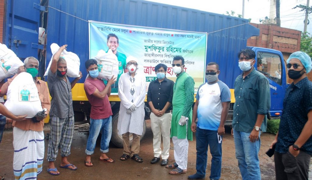 করোনাভাইরাসের এই দুর্যোগে ক্ষতিগ্রস্ত জাহাঙ্গীরনগর বিশ্ববিদ্যালয়ের ১৬০ জন ক্ষুদ্র দোকানিদের খাদ্য সহায়তা ও ত্রাণ দিয়েছেন জাতীয় ক্রিকেটার মুশফিকুর রহিম। আজ সকালে জাহাঙ্গীরনগর বিশ্ববিদ্যালয়ে এই সহায়তা দেয়া হয়।