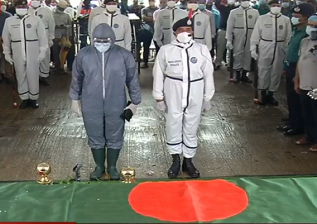 জানাজার আগে বিভিন্ন প্রতিষ্ঠানের পক্ষ থেকে তার মরদেহতে ফুলেল শ্রদ্ধা জানানো হয়।