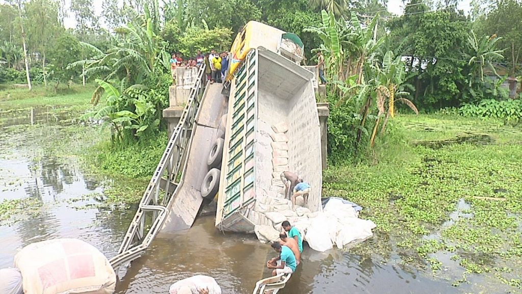বগুড়ার গাবতলীতে সিমেন্ট বোঝাই ট্রাকসহ একটি বেইলি সেতু ভেঙে পড়েছে। শনিবার সকালে গাবতলী উপজেলার সাবাশপুর খালের ওপর থাকা বেইলি সেতুটি ভেঙে পড়ে। এতে সারিয়াকান্দি উপজেলার সঙ্গে জেলা সদরের সরাসরি সড়ক যোগাযোগ বন্ধ হয়ে গেছে।
