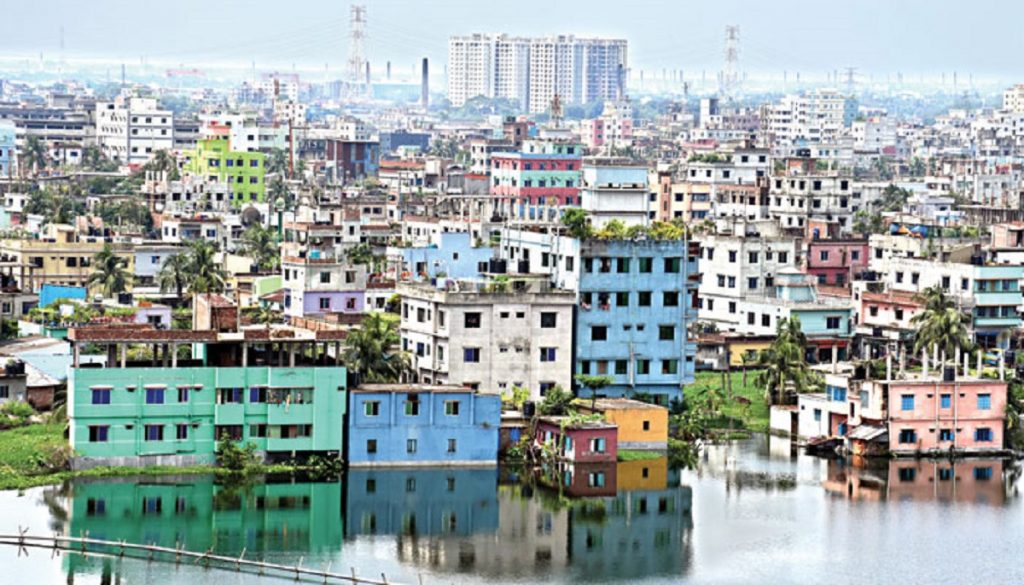 রাজধানীর চারদিকে বন্যার পানি থইথই করছে। দেশের উত্তর ও পূর্বাঞ্চল থেকে নেমে আসা পানি জমা হচ্ছে মধ্যাঞ্চলে। বঙ্গোপসাগরে এ পানি নামছে খুব ধীরগতিতে। এ পানিতে রাজধানীর নতুন নতুন এলাকা প্লাবিত হচ্ছে।