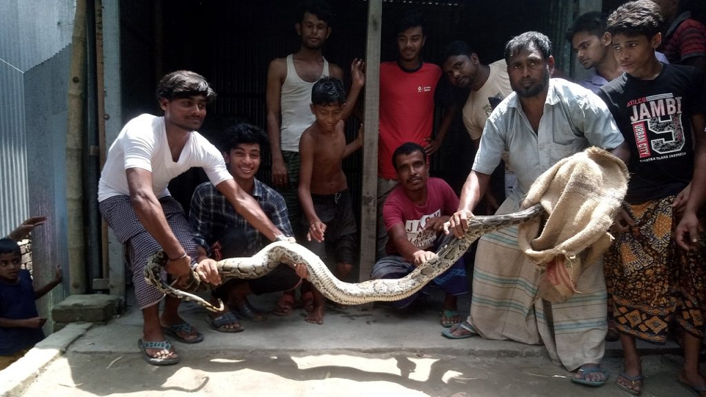বাড়ির লোকজনের চিৎকার-চেঁচামেচিতে এলাকাবাসী সেখানে ছুটে গিয়ে সাপটিকে ধরে বস্তাবন্দী করে ফেলে। সাপটি লম্বায় ১১ ফুট এবং এর ওজন ১৩ কেজি। সাপটিকে এক নজর দেখার জন্য উৎসুক জনতার ভিড় লক্ষণীয় ছিল। পরে দুুপুর দেড়টার দিকে বন বিভাগের লোকজন সাপটিকে নিজেদের জিম্মায় নিয়ে বঙ্গবন্ধু সেতু ইকোপার্কে অবমুক্ত করার জন্য রওনা হয়।