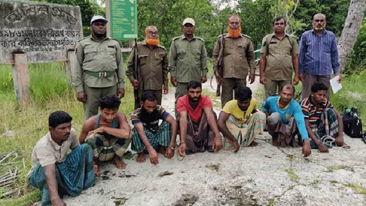 পূর্ব সুন্দরবনের শরণখোলা রেঞ্জের কচিখালী এলাকার পক্ষির চর থেকে সাত হরিণ শিকারিকে আটক করেছে বন বিভাগ।