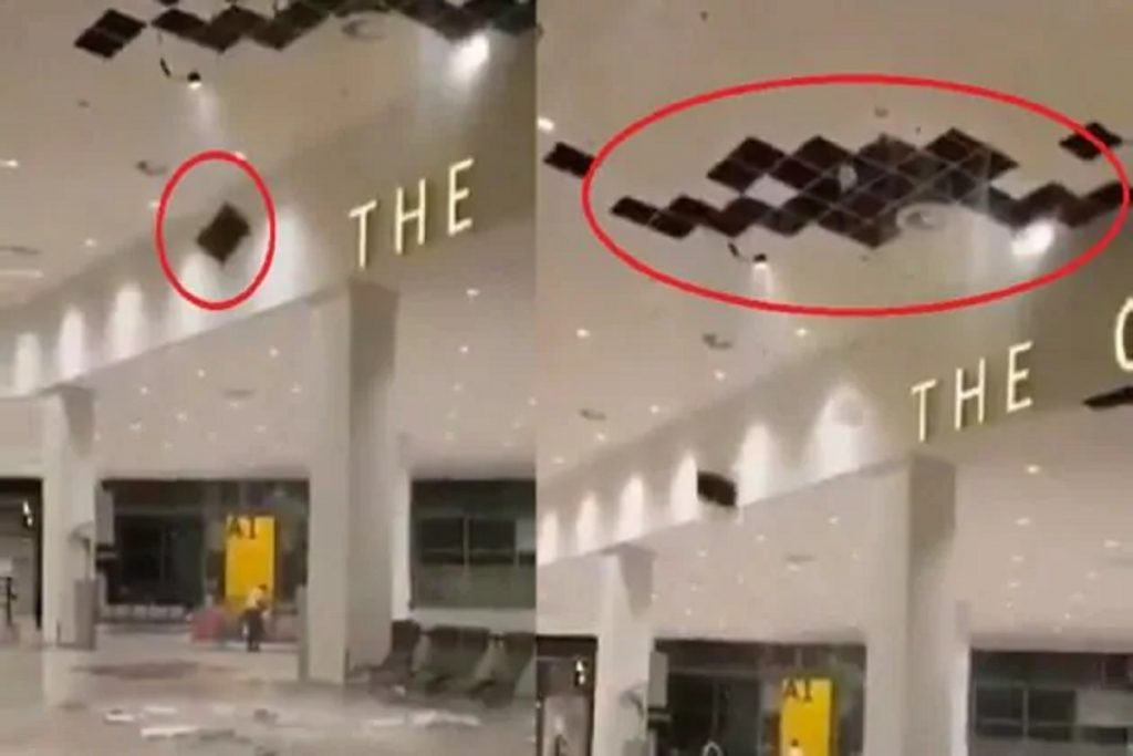 ভিডিওতে দেখা যাচ্ছে, একটি বিমানবন্দরের টার্মিনালের একটি অংশের ছাদ থেকে সাদা চাঙড়ের মতো কিছু খসে খসে পড়ছে। আসলে সেগুলি ফলস সিলিংয়ের অংশ। দেখা যাচ্ছে, বিমানবন্দরের ওই অংশে রীতিমতো আলো জ্বলছে, আশপাশে কিছু লোকজনও ঘোরাফেরা করছেন, অর্থাৎ তা মোটেও কোনও পরিত্যক্ত অংশ নয়।