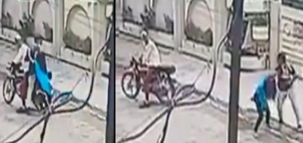 সোমবার ঘটনাটি ঘটেছে ভারতের পাঞ্জাবের জালন্ধরে। গোটা ঘটনা ধরা পড়েছে সিসিটিভি ক্যামেরায়। এই ধস্তাধস্তির সময় ছিনতাইকারীদের অস্ত্রের আঘাতও লেগেছে মেয়েটির। খবর আনন্দবাজার পত্রিকার।