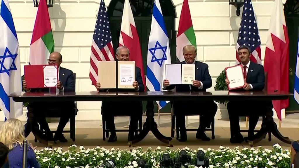 ইসরায়েলকে স্বীকৃতি দিয়ে আনুষ্ঠানিক চুক্তিস্বাক্ষর করলো সংযুক্ত আরব আমিরাত ও বাহরাইন। ঐতিহাসিক এ চুক্তিকে মধ্যপ্রাচ্যে ‘শান্তির নতুন ভোর’ বলে অভিহিত করেন ট্রাম্প।