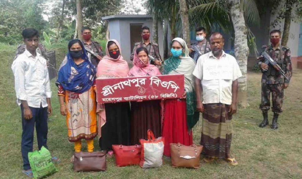 বিজিবি জানায়, মহেশপুরের সীমান্ত এলাকা দিয়ে অবৈধভাবে কিছু নারী-পুরুষ বাংলাদেশ থেকে ভারতে যাচ্ছে এমন খবরে অভিযান চালানো হয়। এ সময় ৪ নারীসহ ৫ জনকে আটক করা হয়। তাদের বাড়ি খুলনার তেরখাদা উপজেলায়। এ ঘটনায় মহেশপুর থানায় মামলা হয়েছে।