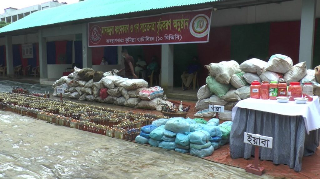 ১০ বিজিবি অধিনায়ক লে. কর্নেল মো. গোলাম ফজলে রাব্বি জানান, ভারত সীমান্তবর্তী কুমিল্লার বিভিন্ন এলাকায় গত ১ ফেব্রুয়ারি থেকে ৩১ আগস্ট পর্যন্ত সময়ে জব্দকৃত ৭ কোটি ২৭ লাখ ৩৩ হাজার ৭২০ টাকার মাদকদ্রব্য ধ্বংস করা হয়েছে। এসবের মধ্যে রয়েছে ভারতীয় ফেনসিডিল, গাঁজা, মদ, ইয়াবা ট্যাবলেট ও বিভিন্ন অবৈধ ট্যাবলেট বিভিন্ন ধরণের মাদকদ্রব্য।