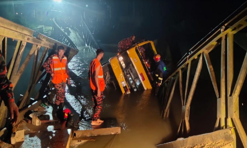 পুলিশ ও স্থানীয়রা জানান, বালু ভর্তি একটি ট্রাক টাঙ্গাইল থেকে বাসাইলের দিক যাচ্ছিলো। পথিমধ্যে ট্রাকটি লাঙ্গুলিয়া বেইলি সেতুর উপর দিয়ে পাড় হওয়ার সময় সেতুটির একাংশ দেবে যায়। এ সময় ট্রাকটির একাংশ নদীতে পড়ে যায়। চালক ওই ট্রাকটি থেকে নিরাপদে নেমে যেতে পারলেও হেলপার আটকা পড়ে। খবর পেয়ে বাসাইল ও টাঙ্গাইল ফায়ার সার্ভিসের দুইটি ইউনিট উদ্ধার কাজ শুরু করে। প্রায় দেড় ঘণ্টা পর তাকে উদ্ধার করতে সক্ষম হয় ফায়ার সার্ভিসের দল।