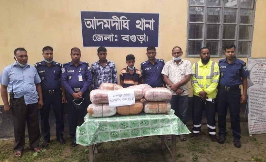বগুড়ার আদমদীঘিতে ৬০ কেজি গাঁজাসহ তিন মাদক কারবারিকে আটক করেছে পুলিশ। শনিবার দুপুরে আদমদীঘি থানা বাসস্ট্যান্ড এলাকায় নওগাঁগামী একটি জিপে অভিযান চালিয়ে এই মাদকদ্রব্য জব্দ করা হয়।