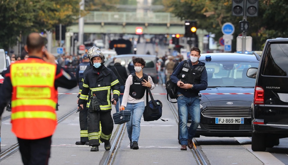 দেশের এ ক্রান্তিলগ্নে দল-ধর্ম-মত নির্বিশেষে সবাইকে জোটবদ্ধভাবে সংকট মোকাবেলার আহ্বান জানান। গোয়েন্দা তথ্য অনুসারে, হামলাকারী ইব্রাহিম আয়ু-সাউয়ি ২১ বছরের তিউনিসিয়ার নাগরিক। সেপ্টেম্বর মাসে, ভূমধ্যসাগরের অবৈধ পথে ফ্রান্সে প্রবেশ করে সে। হামলার সময়, তার কাছে ৩টি ছুরি এবং কোরআন শরিফ ছিলো। বর্তমানে, আহত অবস্থায় পুলিশি হেফাজতে রয়েছে আততায়ী।