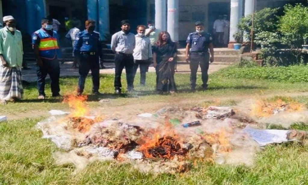 বৃহস্পতিবার সকালে ভৈরবের মেঘনা নদীর লুন্দিয়া-খলাপাড়া গ্রাম সংলগ্ন এলাকায় এই ঘটনাটি ঘটে। ঘটনার সময় পুলিশ ১০ জন জেলেকে আটক করার পর ভ্রাম্যমাণ আদালত রাতেই প্রত্যেককে ১০ হাজার টাকা করে জরিমানা করেন।