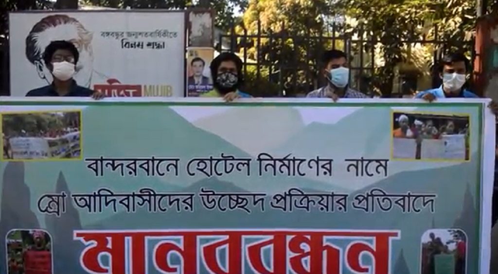 মানববন্ধনকারীরা জানান, বান্দরবানে চিম্বুক পাহাড়ে হোটেল নির্মাণ হলে সেখানে প্রাকৃতিক সৌন্দর্য বিপন্নের পাশাপাশি ক্ষতিগ্রস্ত হবে সেখানকার ম্রো আদিবাসীরা। ইতোমধ্যে সেখানকার চিম্বুক পাহাড়বাসীরা উচ্ছেদের শঙ্কা প্রকাশ করে প্রতিবাদ জানিয়েছে। এ ব্যাপারে সচেতন নাগরিক হিসাবে তাদের পাশে দাঁড়ানো প্রয়োজন।