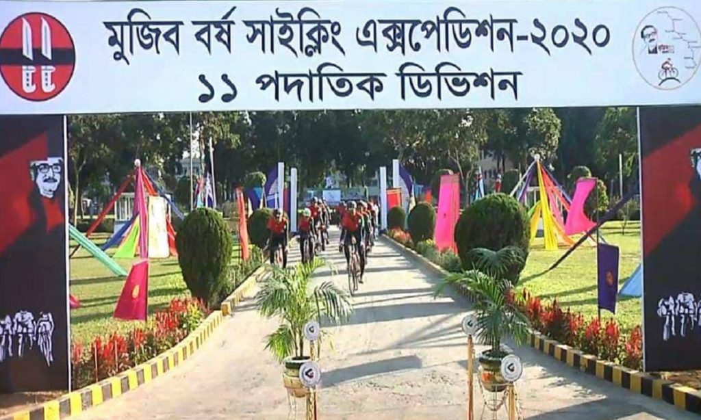 সেনানিবাসে আয়োজিত অনুষ্ঠানে ১১ পদাতিক ডিভিশনের জিওসি নাজমুল হাসান ফুল দিয়ে স্বাগত জানান সাইক্লিংয়ে অংশ নেয়া ১৬ সেনা কর্মকর্তা ও সেনা সদস্যদের। এ সময় তিনি বলেন, মুজিব বর্ষকে ইতিহাসের পাতায় অমলিন রাখতে এই দীর্ঘপথ পাড়ি দেবার দুঃসাহসিক প্রয়াস গ্রহণ করেছে সেনাবাহিনী। সাহস ও সাফল্যের সঙ্গে এই সাইকেলযাত্রা সম্পন্ন হবে বলেও আশাবাদ ব্যক্ত করেন তিনি।