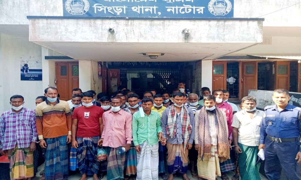 সিংড়া থানার ভারপ্রাপ্ত কর্মকর্তা নূর এ আলম সিদ্দিকী জানান, গোপন সংবাদের ভিত্তিতে শনিবার রাতে করচমারিয়া সবুজ সংঘ ক্লাবে অভিযান চালানো হয়। এ সময় জুয়া খেলা অবস্থায় ২ লাখ টাকা ও জুয়া খেলার সরঞ্জামসহ ৩২ জনকে আটক করা হয়। পরে তাদের বিরুদ্ধে ১৮৬৭ সালের প্রকাশ্য জুয়া আইনের ৪/৫ ধারায় মামলা দিয়ে সিংড়া আমলি আদালতে প্রেরণ করা হয়। পরে আদালতের বিচারক রেজাউল করিম তাদের সবার জামিন মঞ্জুর করেন।