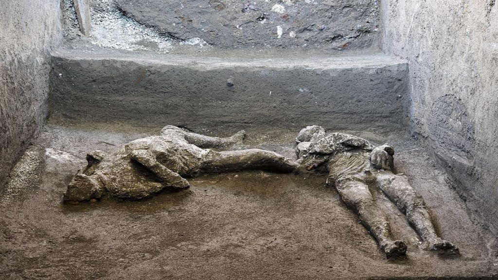 প্রাচীন রোমান নগরী পম্পেইয়ের উত্তর-পশ্চিমে পাথর হয়ে যাওয়া দেহাবশেষ দু’টির সন্ধান মেলে। এর একটি সম্ভ্রান্ত কোনো ব্যক্তির বলে ধারণা করছেন প্রত্নতাত্ত্বিকরা। অপরজনকে ধারণা করা হচ্ছে তার দাস।