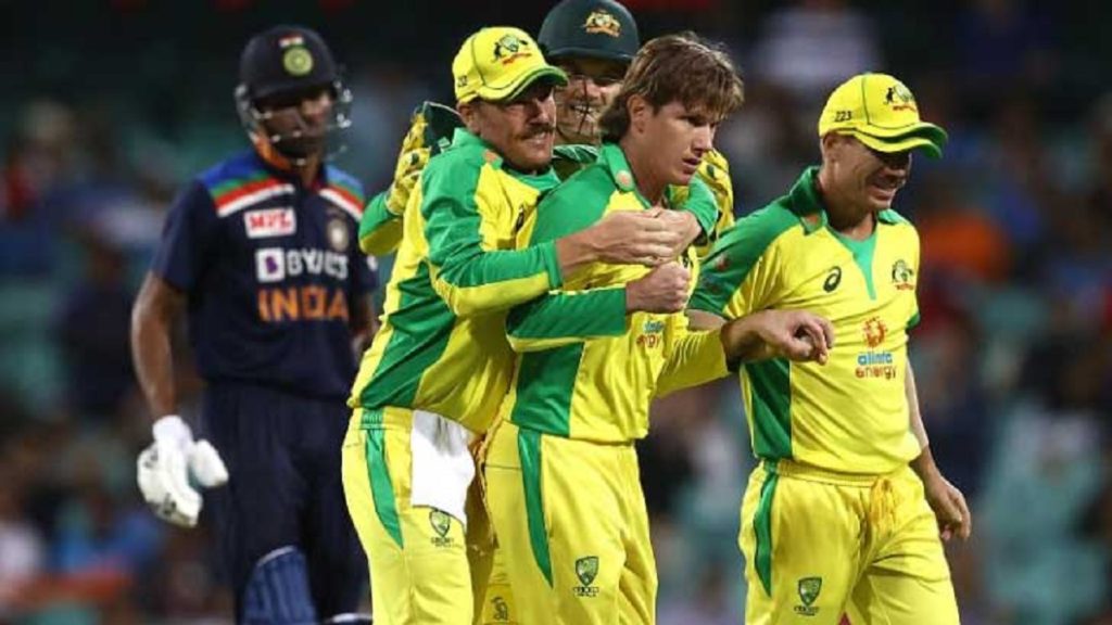 ভারত: ৫০ ওভারে ৩০৮/৮ (হার্দিক পান্ডিয়া ৯০, শিখর ধাওয়ান ৭৪, নবদীপ শাইনি ২৯*, রবিন্দ্র জাদেজা ২৫, আগারওয়াল ২২,বিরাট কোহলি ২১; অ্যাডাম জাম্পা ৪/৫৪, জস হ্যাজলেউড ৩/৫৫)।