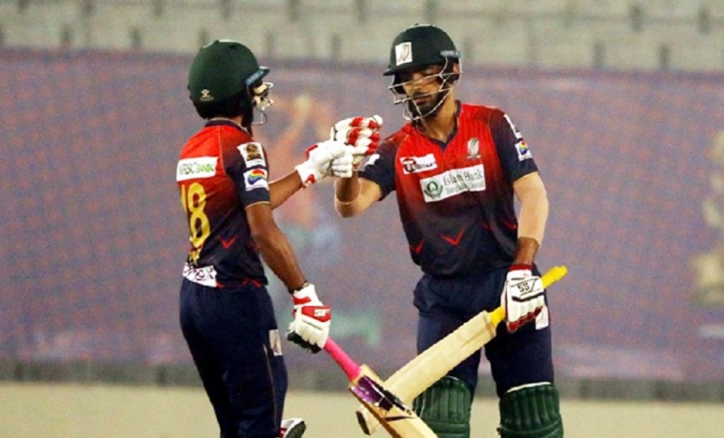 অথচ মিরপুর শের-ই বাংলা ক্রিকেট স্টেডিয়ামে ব্যাট করতে নেমে শুরুটা বেশ মন্থরগতির ছিল দুই অপেনার তামিম ইকবাল ও সাইফ হাসানের। ১৭ বলে ১৯ রান করে তামিম ফিরে গেলেও ক্রিজে ছিলেন সাইফ। ওয়ানডে মেজাজে খেলা সাইফ করেন ৪৩ বলে ৫০ রান। এরপর দেশের দ্রুততম সেঞ্চুরিয়ান পারভেজ ইমন সচল রাখতে পারেনি রানের চাকা। ১৩ বলে ১৩ রান করে মাঠ ছাড়েন তিনি।