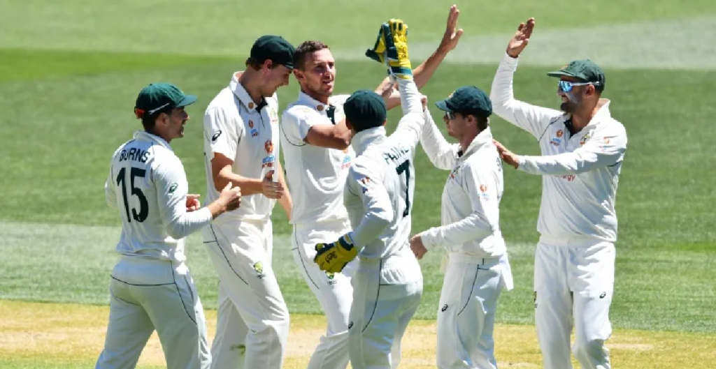 প্যাট কামিন্স নিয়েছেন চার উইকেট আর হ্যাজেলউড নিয়েছেন ৫টি উইকেট। জয়ের জন্য ৯০ রানের লক্ষ্যে ব্যাট করছে স্বাগতিক অস্ট্রেলিয়া।