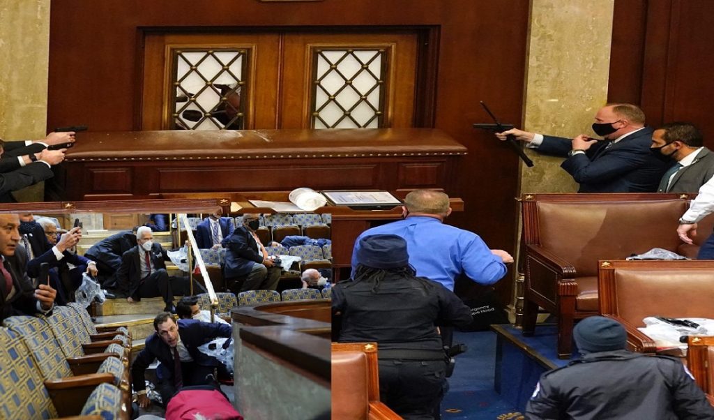 নজিরবিহীন হামলার শিকার হলো মার্কিন কংগ্রেস। ক্যাপিটল হিলে ঢুকে তাণ্ডব চালিয়েছে প্রেসিডেন্ট ডোনাল্ড ট্রাম্পের সমর্থকরা। পুলিশের সাথে সংঘাত-সংঘর্ষে প্রাণ গেছে এক নারীসহ অন্তত ৪ জনের। পরিস্থিতি নিয়ন্ত্রণে জারি করা হয়েছে কারফিউ-লকডাউন।