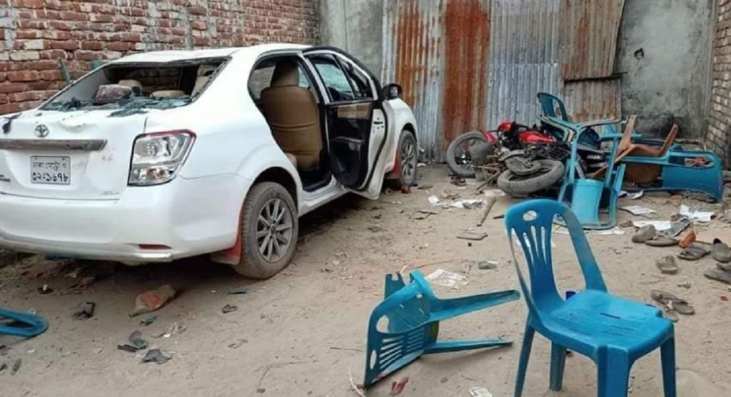 স্থানীয়রা জানান, নোয়াপাড়া এলাকায় কাউন্সিলর প্রার্থী রুহুল ফরাজী একটি পথসভা করছিলেন। পথসভা চলাকালে আরেক কাউন্সিলর প্রার্থী আনোয়ার মিছিল নিয়ে যাচ্ছিলেন পাশ দিয়ে। হঠাৎ করেই একটি পক্ষ অপর পক্ষে ঢিল ছোঁড়া শুরু করে। একপর্যায়ে উভয় পক্ষ সংঘর্ষে জড়িয়ে পরে। এ সময় চেয়ার, প্রাইভেটকার ভাঙচুর এবং একটি পিকআপ ভ্যান পুড়িয়ে দেয়া হয়। পরে ফায়ার সার্ভিসের কর্মীরা এসে আগুন নিয়ন্ত্রণে আনে।