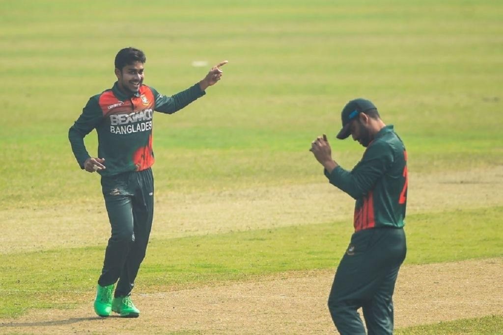টাইগারদের হয়ে দুটি করে উইকেট নিয়েছেন মোস্তাফিজুর রহমান ও সাকিব আল হাসান। চার উইকেট শিকার করেছেন আগের ম্যাচে ১ উইকেট পাওয়া মেহেদি মিরাজ। তরুণ পেসার হাসান মাহমুদ নিয়েছেন ১টি উইকেট।