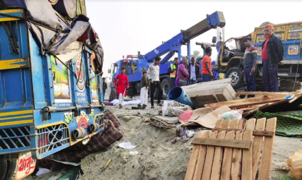 এ ব্যাপারে এলেঙ্গা হাইওয়ে পুলিশ ফাঁড়ির এসআই জিয়াউর রহমান বলেন, ঢাকা থেকে ছেড়া আসা উত্তরবঙ্গগামী একটি ট্রাক মহাসড়কের করটিয়ার এলাকায় পৌঁছালে পামচার হয়ে ঢাকাগামী অপর একটি আসবাবপত্র বোঝাই মিনিট্রাকের সাথে মুখোমুখি সংঘর্ষ হয়। এতে ঘটনাস্থলেই মিনিট্রাকের দুইজন নিহত এবং মিনি ট্রাকের চালক আহত হয়। পরে খবর পেয়ে আহতকে উদ্ধার করে টাঙ্গাইল জেনারেল হাসপাতালে পাঠানো হয়।
