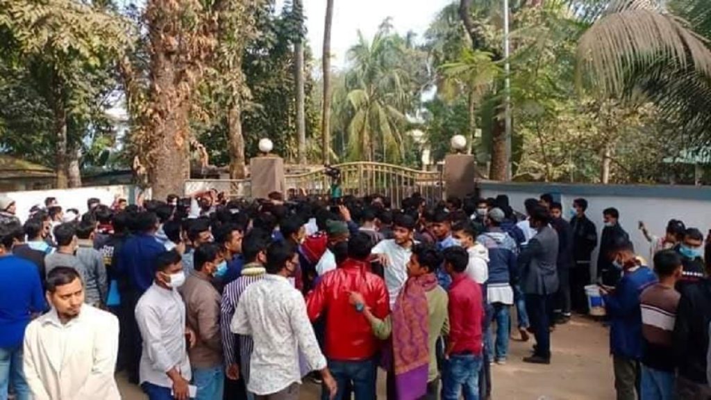 শুক্রবার সকালে পরীক্ষা দিতে আসা কয়েক হাজার চাকরিপ্রার্থী ওই নোটিশ দেখে ক্ষোভে ফেটে পড়েন। শহরের ৫টি কেন্দ্রে ৩ হাজার ২শ ৩৭ পরীক্ষার্থী এক জোট হয়ে প্রতিবাদ জানাতে তারা রাস্তায় নেমে বিক্ষোভ মিছিল করেন। এক পর্যায়ে প্রেসক্লাব চত্বরে প্রতিবাদ সভাও করেন। পরে জেলা প্রশাসকের বাসভবন ঘেরাও করে বিক্ষোভ করতে থাকেন। এ সময় অতিরিক্ত পুলিশ মোতায়েনের পাশাপাশি নির্বাহী ম্যাজিস্ট্রেট এসে পরিস্থিতি সামাল দেয়ার চেষ্টা করেন।