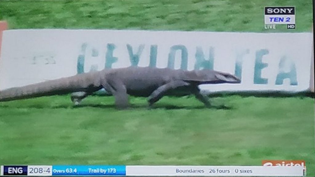 গল টেস্টে অ্যাঞ্জেলো ম্যাথিউসের শতক, তারপর তান্ডব চালিয়েছে প্রতিপক্ষ দলের অধিনায়ক জো রুট। এই ম্যাচের দ্বিতীয় সেশনে কিছুটা দ্রুতি হারাচ্ছিলো ম্যাচ, ঠিক সেই সময়ই হুট করে স্টেডিয়ামে হাজির হয় বিশাল আকৃতির একটি গুইসাপ।