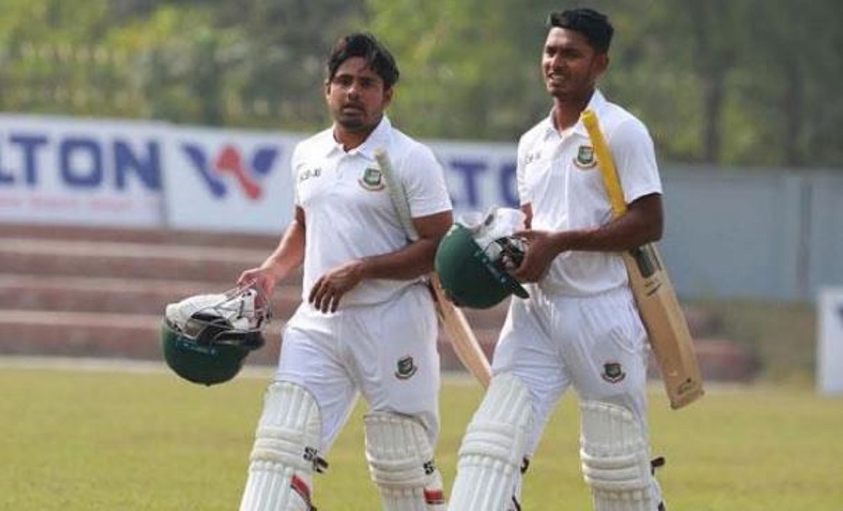জবাবে ৩৮৮ রানের জয়ের টার্গেটে ব্যাট করতে নেমে দ্রুতই আউট হয়ে মাঠ ছাড়েন আফিফ হোসেন ও নাইম শেখ। আর ২৩ রানে অপরাজিত থেকে দিন শেষ করেন সাদমান ইসলাম। ইয়াসির রাব্বির ব্যাট থেকে আসে ৩৩ রান।