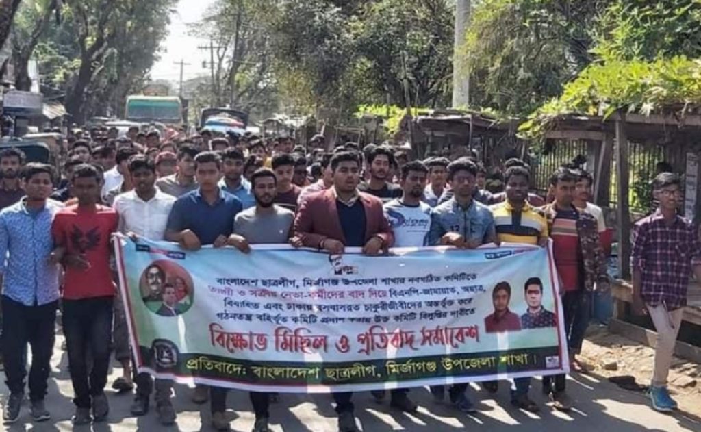 মির্জাগঞ্জ উপজেলা সাবেক ছাত্রলীগ সাধারণ সম্পাদক পদবঞ্চিত মো. রাকিব মৃধা জানান, মঙ্গলবার মধ্যরাতে মির্জাগঞ্জ উপজেলা ছাত্রলীগের যে কমিটি অনুমোদন দেয়া হয়েছে তাতে অছাত্র, জামায়াত-বিএনপি অন্তর্ভুক্ত করে ত্যাগী সক্রিয় নেতাকর্মীদের বাদ দেয়া হয়েছে। তাই আমরা ওই অবৈধ কমিটি বাতিলের দাবিতে শান্তিপূর্ণভাবে মিছিল করেছি। কিন্তু পুলিশ অহেতুক আমাদের মিছিলে লাঠিচার্জ করে ১০ জনকে আহত করে।