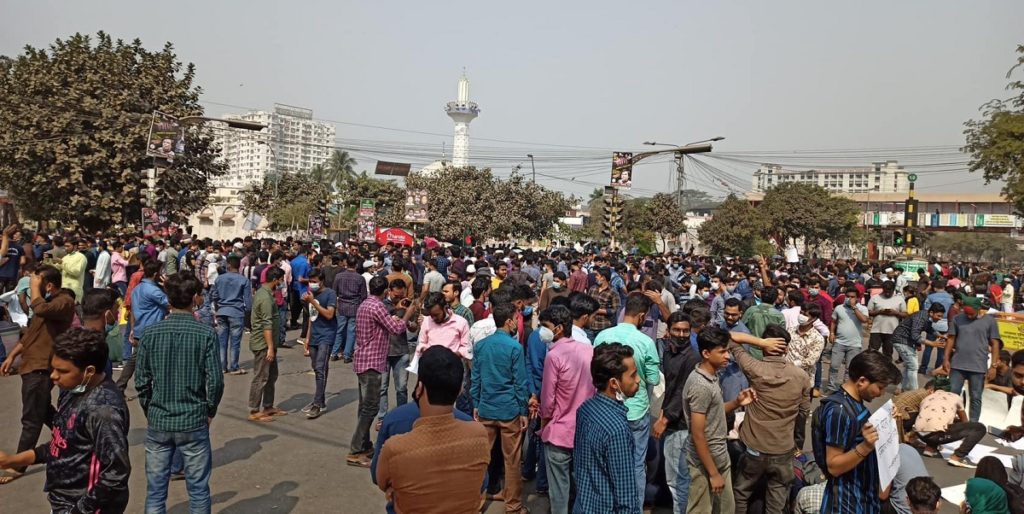 বুধবার সকাল ৯টায় শিক্ষার্থীরা নীলক্ষেত মোড়ে অবস্থান নিয়ে সড়ক অবরোধ করেন।