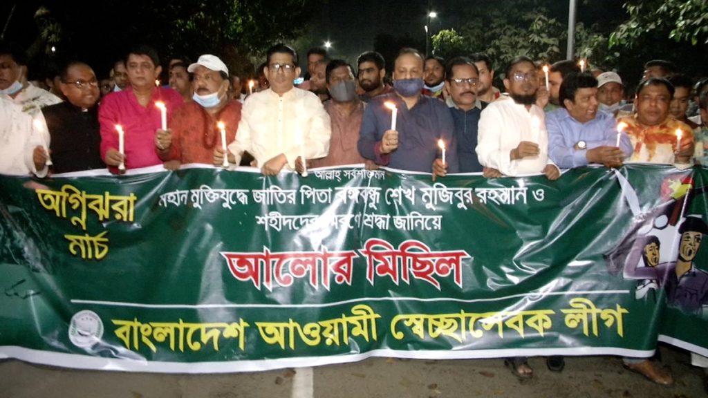 মার্চের প্রথম প্রহরে আলোর মিছিল ও মোমবাতি প্রজ্জ্বলন কর্মসূচি পালন করেছে স্বেচ্ছাসেবক লীগ।