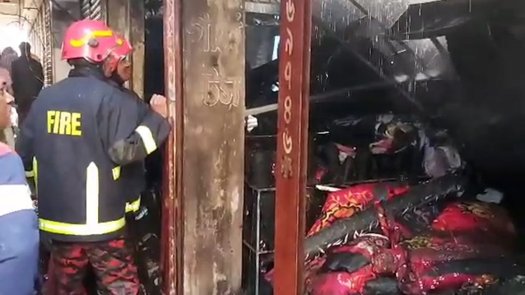 ফায়ার সার্ভিস কর্মীরা জানান, মঙ্গলবার সকাল সাড়ে ছয়টার দিকে কাপড়ের দোকান থেকে আগুনের সূত্রপাত। মুহূর্তেই তা ছড়ায় আশপাশের দোকানে। আগুনে ১৬টি দোকান পুড়ে গেছে পুরোপুরি। ক্ষতি হয়েছে আরও প্রায় ১০টি দোকানের।