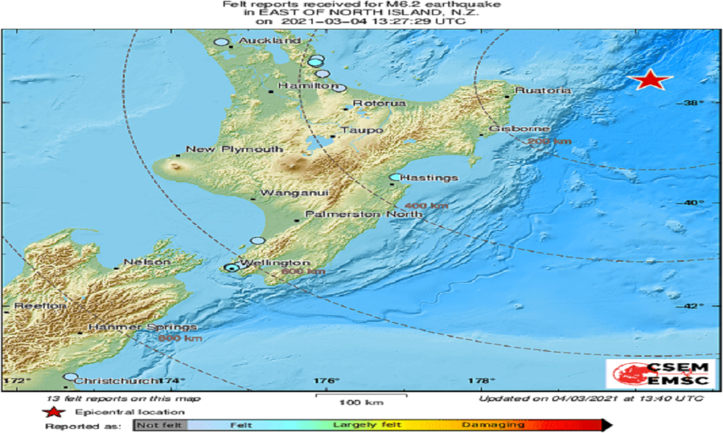 দাবি- পূর্ব উপকূলে স্বাভাবিকের চেয়ে ১০ ফুট উচু জলোচ্ছ্বাস লক্ষ্য করা যাচ্ছে। এছাড়া, মধ্য আমেরিকার দেশ- পেরু, ইকুয়েডর ও চিলির সমুদ্রেও ৩ ফুটের ওপর ছিলো সমুদ্রের ঢেউ। স্থানীয় সময় রাত সাড়ে ৮টায় সবচেয়ে শক্তিশালী ৮ দশমিক ১ মাত্রার ভূমিকম্পটি অনুভূত হয়। যার উৎপত্তিস্থল ছিলো নিউজিল্যান্ডের মূল ভূখণ্ড থেকে ৬২১ মাইল দূরের কারমাদেক দ্বীপে।