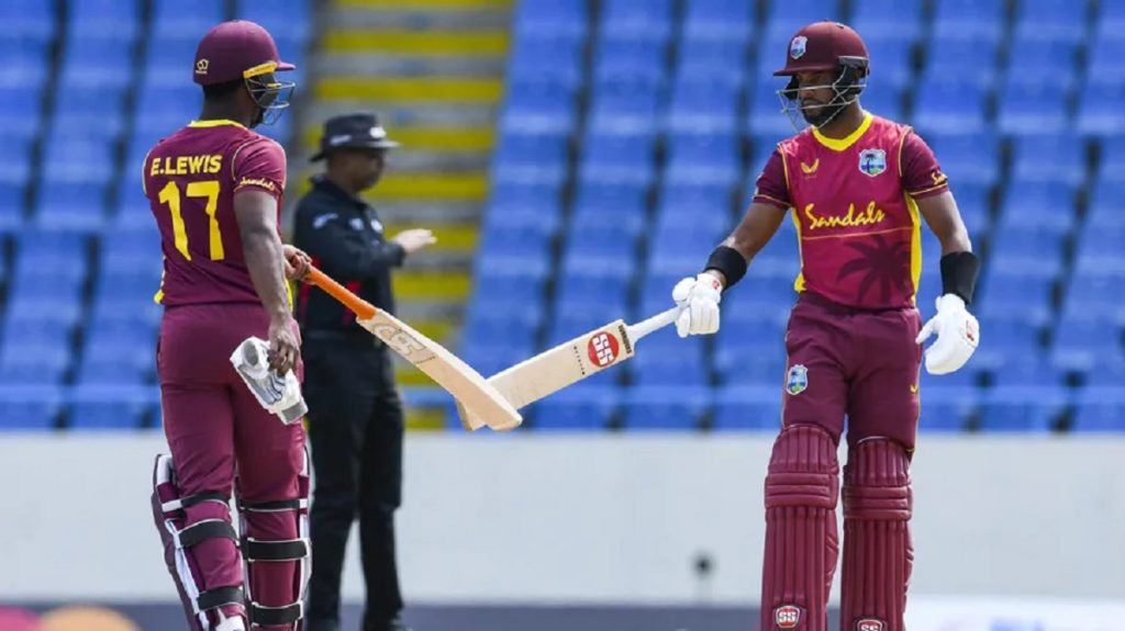 জবাবে ২৩৩ রানের টার্গেটে ব্যাট করতে নেমে এভিন লিউইস ও শাই হোপের ১৪৩ জুটি গড়ে জয়ের কাছাকাছি নিয়ে যায় উইন্ডিজকে।